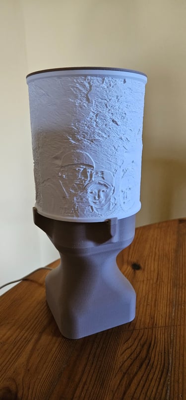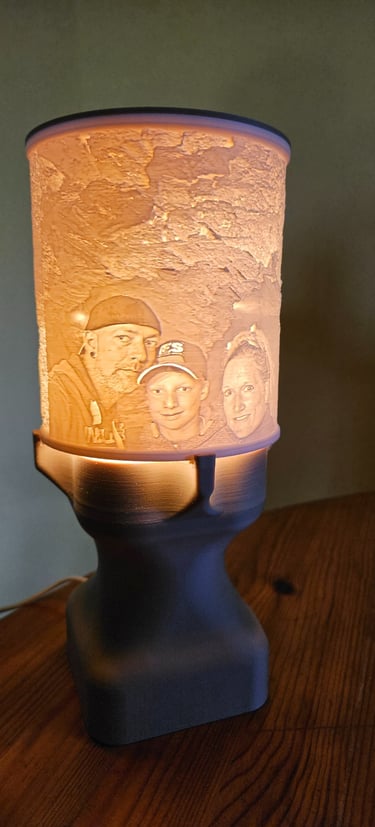 Mit dieser Lampe bekommen sie etwas ganz besonderes. Es werden 2 Bilder verarbeitet die sie nach Ihren Wünschen aussuchen. Diese werden erst sichtbar wenn das Licht eingeschaltet wird. Der Lampenschirm sitzt locker auf dem Sockel, sodass zwischen beiden Bildern gewechselt werden kann.