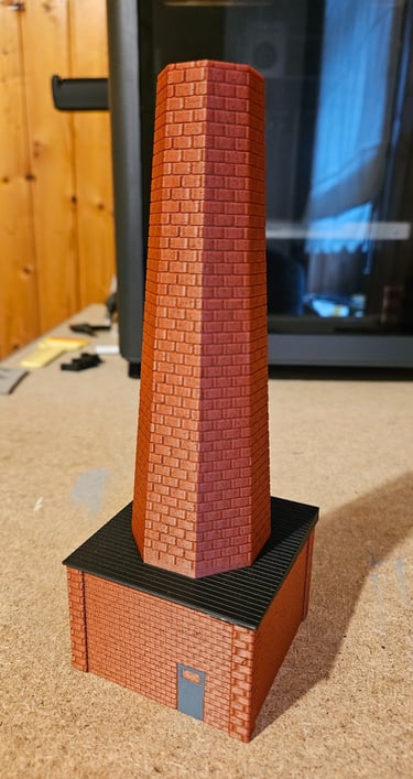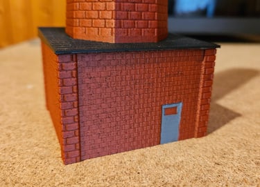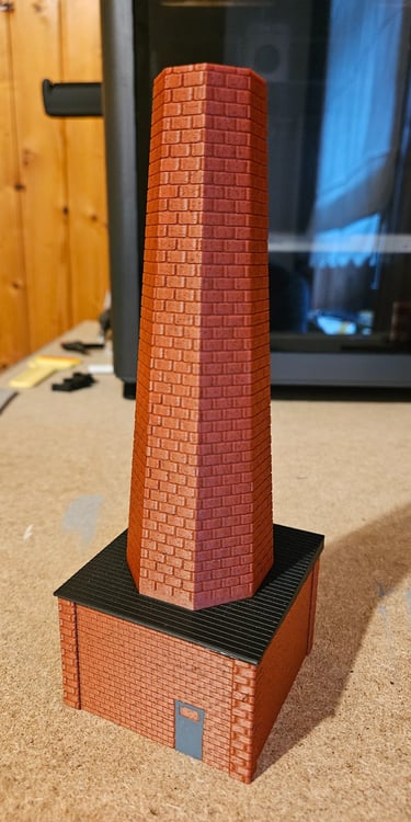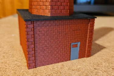 Gedruckt habe ich das Modell mit einem Filament in Ziegeloptik. Das Dach ist separat in schwarz gedruckt und aufgeklebt.