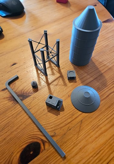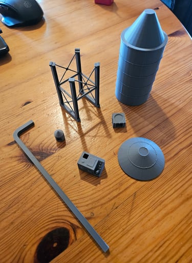 Das Modell ist 72mm breit, 72mm tief und 205mm hoch. Das Gebäude ist innen leer und bietet einen Raum von 64mm x 64mm x 40mm. Nach oben ist ein durchgehendes Loch (22mm) eingearbeitet.