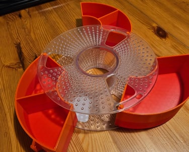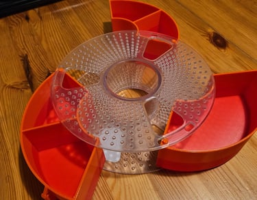 Egal ob Küche, Büro oder Werkstatt, in den Fächern ist Platz für allerlei. Die 3 Seiten lassen sich einfach nach außen klappen und die Aufteilung ist frei wählbar. Durch einen Zwischenring können mehrere Boxen